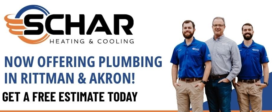 Need plumbing help? Schar now offers plumbing services in Rittman, Akron, Ohio and Surrounding areas—backed by the same crew and the same commitment to quality you expect from our heating & cooling services.